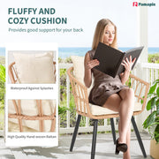 Designed for lasting outdoor enjoyment, this 6/7-piece patio set combines heavy-duty PE rattan and rust-proof iron frames to withstand sun, rain, and snow. Thick cushions with UV-resistant polyester covers zip off for easy cleaning, while the wood-look plastic tabletop resists stains and scratches.